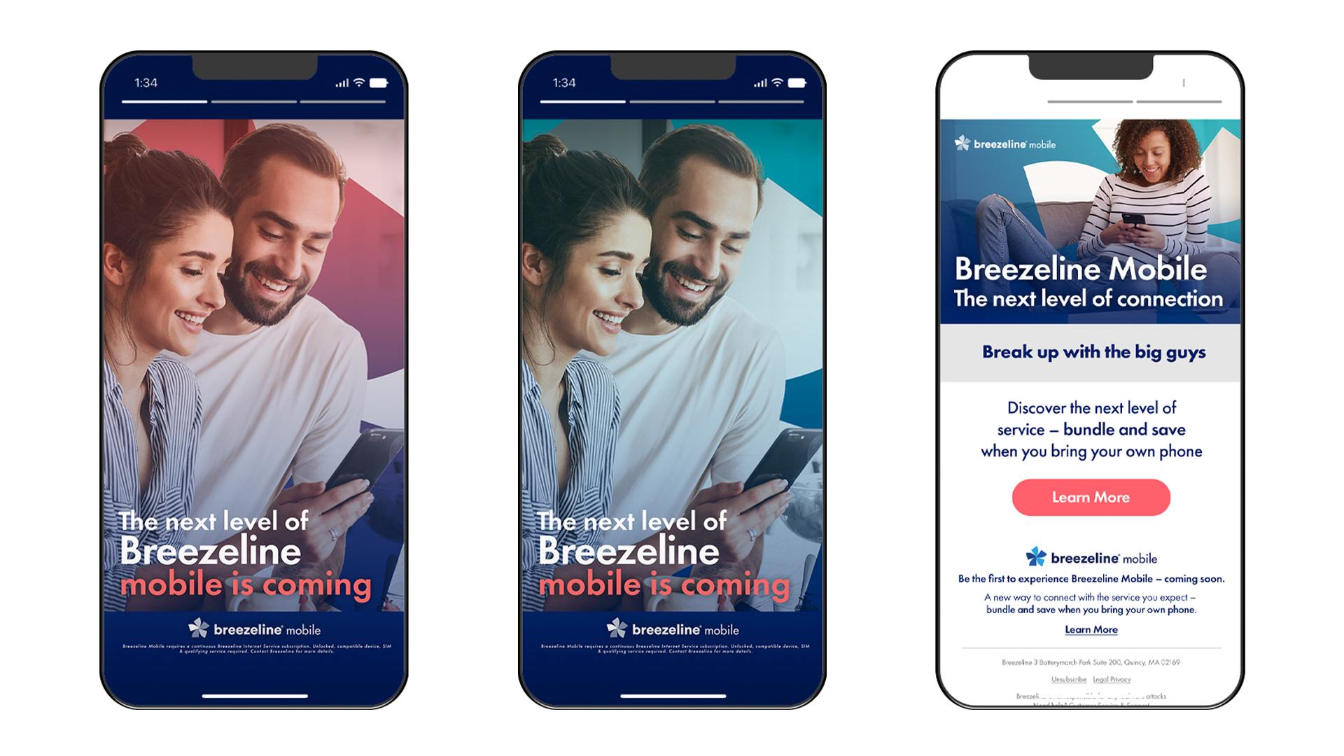 Breezeline is a cable provider that recently ventured into the mobile market with the launch of Breezeline Mobile. This project aimed to create a cohesive and engaging digital presence for the new mobile service, targeting both existing cable customers and new mobile users. The primary goal of the Breezeline Mobile project was to design and implement a comprehensive digital marketing strategy. This included creating visually appealing and effective digital advertisements, email campaigns, and social media content to promote the new mobile service.