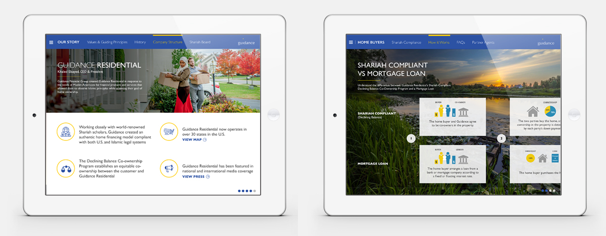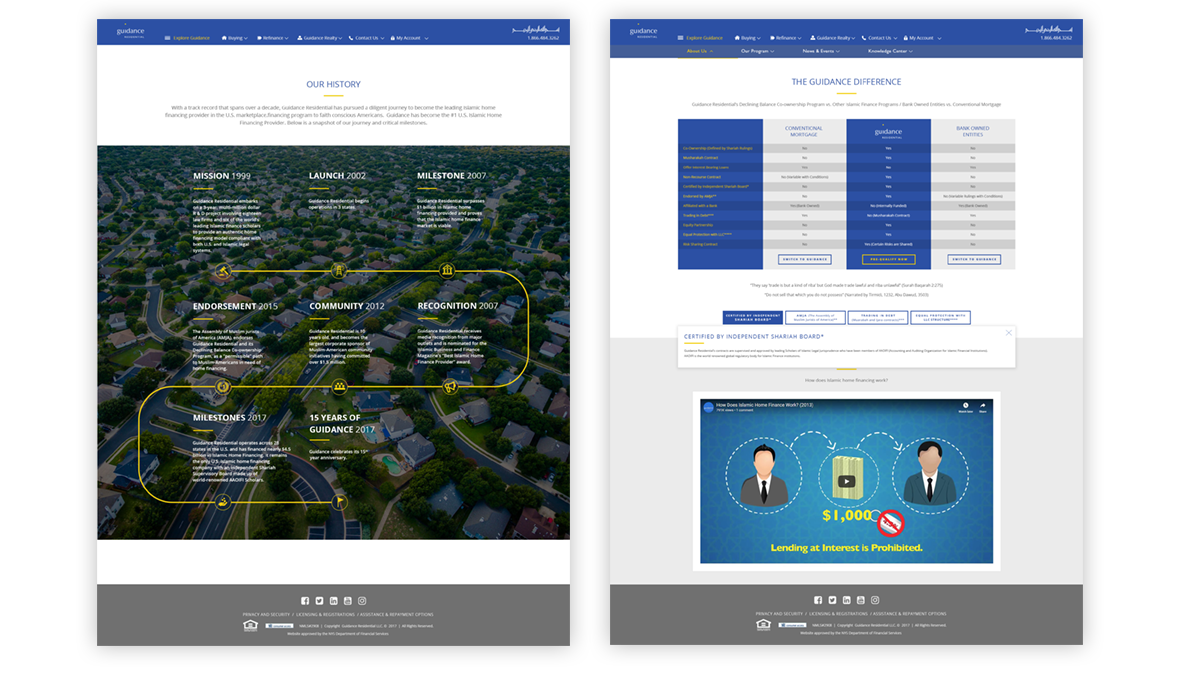 The cohesive brand identity and well-designed marketing materials successfully established Guidance Residential as a trustworthy and reliable provider of Shariah-Compliant home financing. The user-friendly websites and mobile apps enhanced customer experience and engagement, contributing to the company’s growth and positive reputation, funding over $10 Billion home finance for Islamic-Americans.